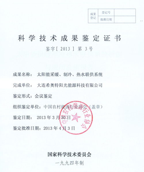 太陽能供暖制冷熱水聯供系統科技成果鑒定報告